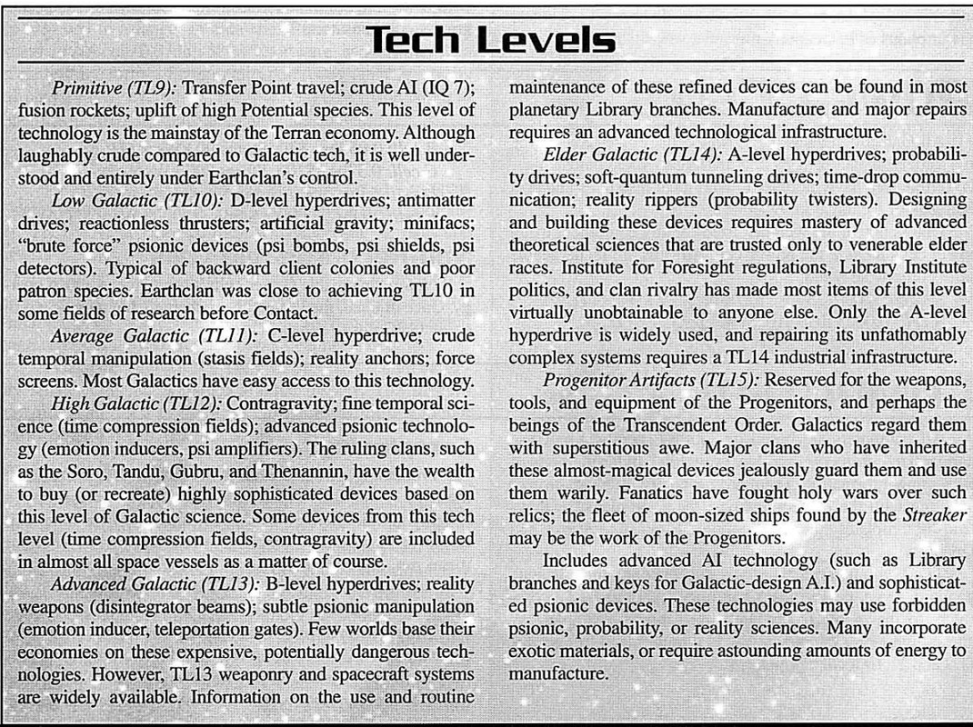 2. Are there signature technologies for TL 9, 10, 11, and 12 in Orichalcum Universe, considering it's a modified 3e setting? In your mind I mean. Last edited by warellis; 02-26-2024 at 03:35 AM. |